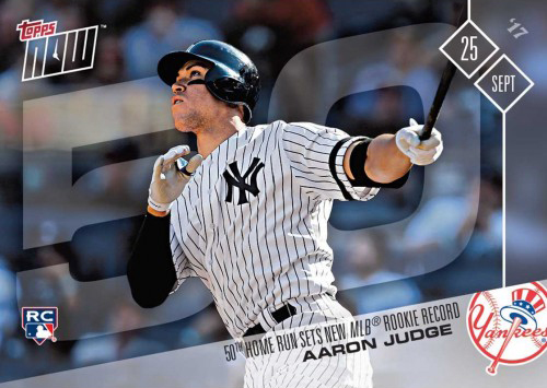Aaron Judge had a lot of 2017 Topps Now Baseball cards–more than 40 in the main set not including autographs and memorabilia cards. Not all of his accomplishments were as big as others, but most were among the top-sellers for the print-on-demand brand’s sophomore season. But then there’s card #654, which commemorates his record-breaking 50th rookie home run.