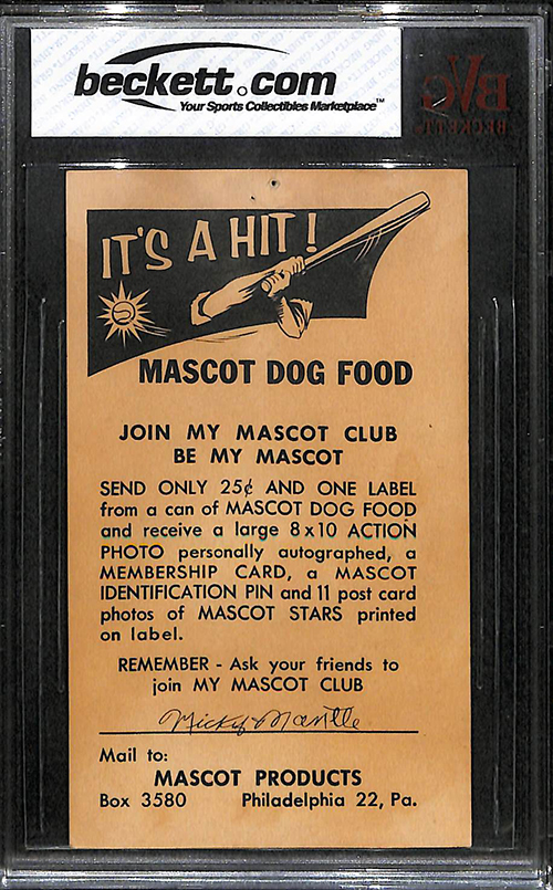 When it comes to vintage Mickey Mantle baseball cards, you’d think there’s not much left to be discovered. And just like that, history changes and something new is found. A 1950s Mascot Dog Food Mickey Mantle card was recently uncovered, hiding inside a photo album at a Pennsylvania antique sale. The find may turn out to be the rarest Mickey Mantle card to originate from his playing days.