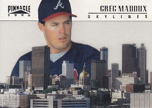 1996 Pinnacle Skylines turns stars of the day into de facto kaiju, making them into Godzilla-sized behemoths towering over the local downtown core.