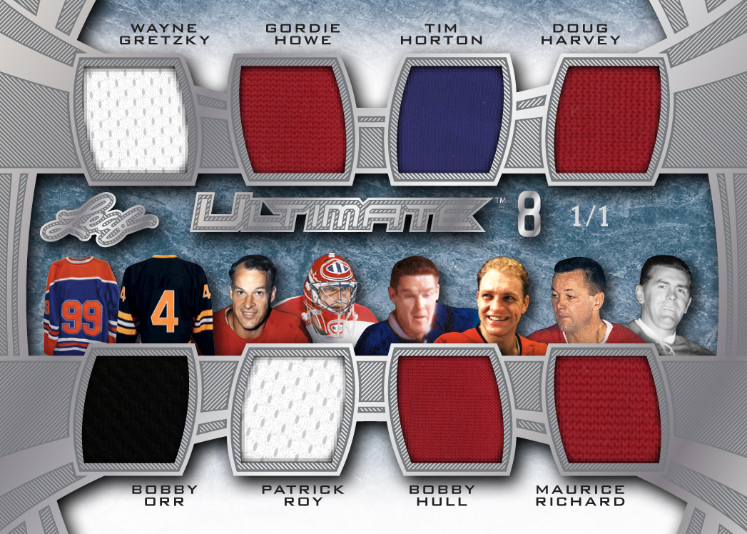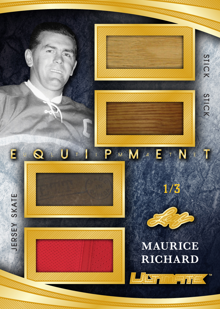 The excitement comes to a crescendo with The Ultimate Card. Each of these low-numbered cards feature six premium memorabilia pieces that could include jerseys, patches, gloves, sticks, and pads. Ultimate Equipment is a similar effort, but has just four swatches instead.