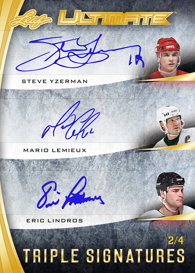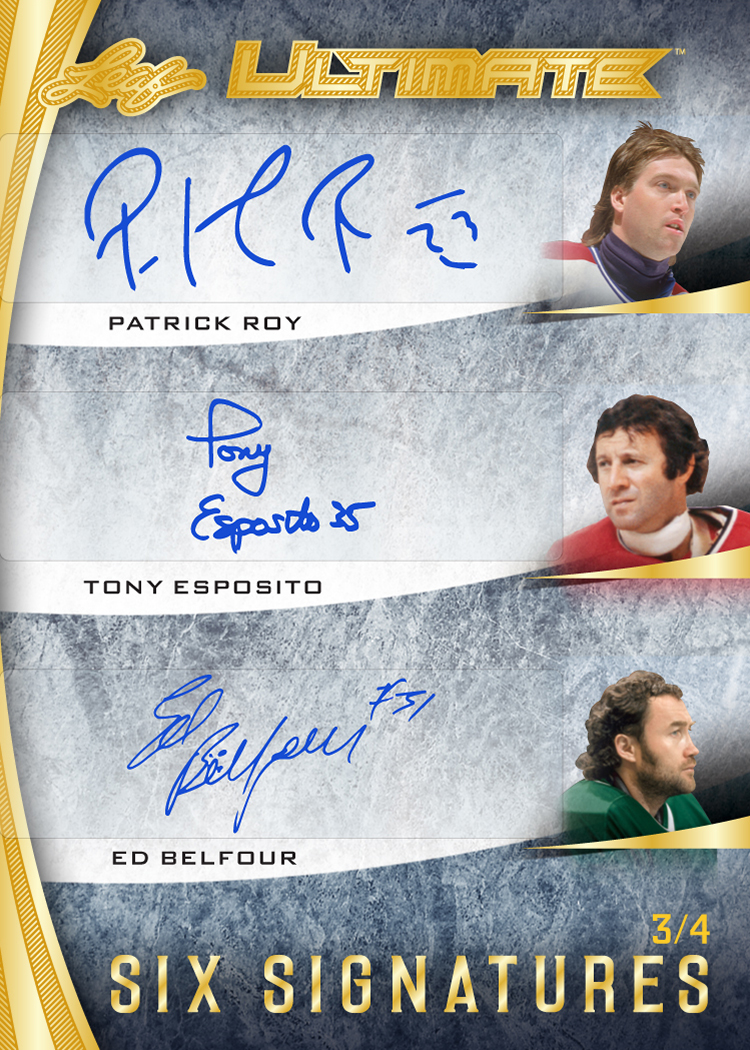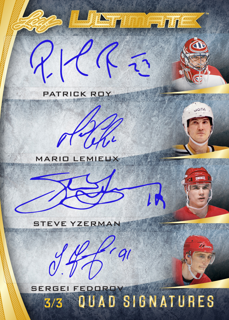 There is a regular Ultimate Signatures set that has cards from Martin Brodeur and it is joined with multi-signed collections like Ultimate Triple Signatures, Ultimate Quad Signatures, and Ultimate Six Signatures. Ultimate Auto Memorabilia takes things to another level with both jersey and patch versions.
