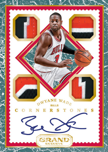 There are many new concepts coming to light with 2016-17 Panini Grand Reserve Basketball and it all starts with the Cornerstones cards. With four pieces of memorabilia and a hard-signed autograph, they will be numbered to 99 copies or less. In addition to the Rookie Cornerstones that are part of the main checklist, Cornerstones has separate lineups for veterans and legends that are inserts. All Cornerstones cards combine to fall once per box.