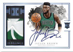 The 2016-17 Panini Impeccable Basketball base set has 100 veteran stars or retired greats (/99), which come at a rate of two cards per box. Every box is also slated to contain one of more than 30 different Rookie Autographs (/99) and many of the freshmen that made a big impression during their first year are expected to be on the checklist. The complete set is rounded out by over 20 Elegance Rookie Jersey Autographs (/99).
