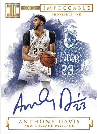 The final autograph concept revealed in promotional literature for 2016-17 Panini Impeccable Basketball is called Indelible Ink and it has a sharp design. Other autograph sets could feature interesting elements such as unique print technology and even precious metals.