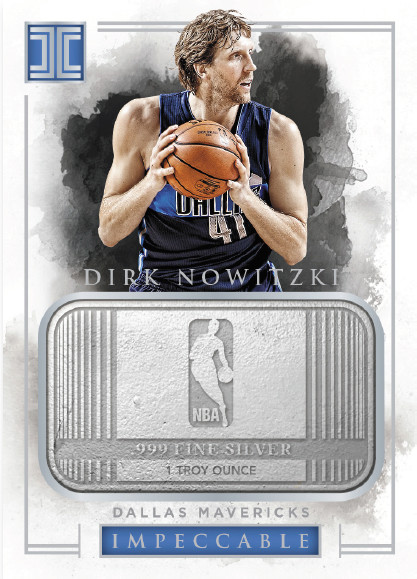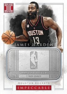 2016-17 Panini Impeccable Basketball is a premium product with a hefty price tag in the $500-per-box range, 2016-17 Panini Impeccable Basketball has five hard-signed autographs per box on average along with two base cards and a parallel. However, there is one box in each case that is expected to sub out one of those parallels for a precious metal card which will house a generous piece of gold or silver.