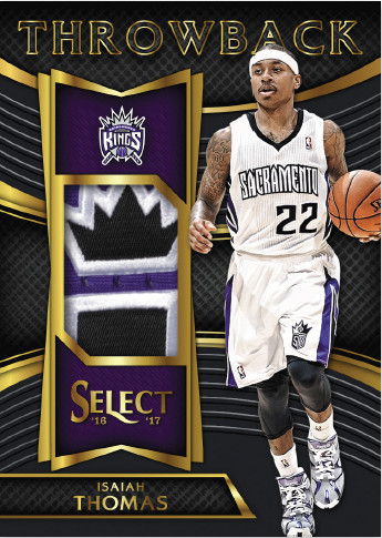 The most intriguing memorabilia collection announced for 2016-17 Panini Select Basketball, though, will be one with a bit of a historical slant. Throwback Memorabilia takes current stars and depicts them with previous teams along with a piece of a jersey from their stint there. There will be 50 different players to collect along with some parallel versions, including Black Prizm.