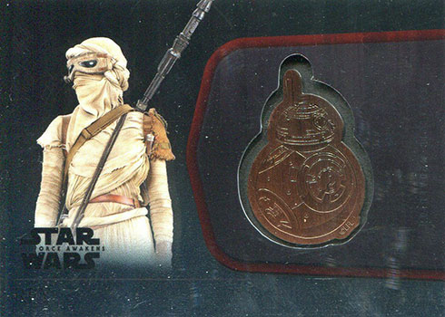 Medallion Cards highlight specific characters, both on the cards and the medal pieces embedded in them. These come in four versions: Bronze (/50), Silver (/25), Gold (/10) and Platinum (1/1).