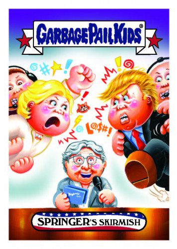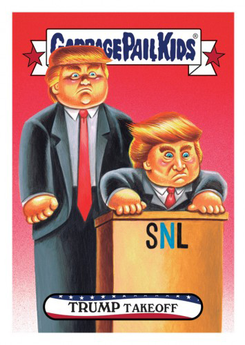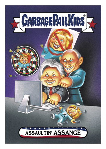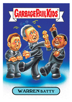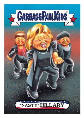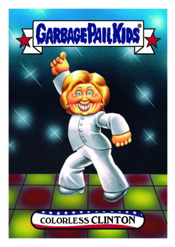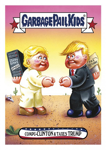 The lead-up to the U.S. Presidential election had its share of jokes, memes and gags. And the GPK gang didn’t let up. 2016-17 Topps Garbage Pail Kids disg-Race to the White House is yet another online exclusive, print-on-demand series to make light of the people who were looking to run the world’s most powerful nation.