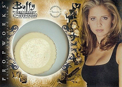 Despite producing more than a dozen sets for Buffy, Inkworks never managed to get a Sarah Michelle Gellar autograph. Rittenhouse not only did it with their first Ultimate Collector’s Set in 2015 but they’ve done it again here with an autographed costume card of the actress.