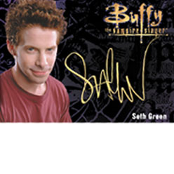 Joining Gellar is Alyson Hannigan who played Buffy’s best friend, Willow. The actress, who also had major roles in American Pie and How I Met Your Mother, has a pair of autographs here. Hannigan’s only other autograph card came in the show’s debut release, 1998 Inkworks Buffy the Vampire Slayer Season 1. Today, it’s a tough card to track down and prices reflect that.