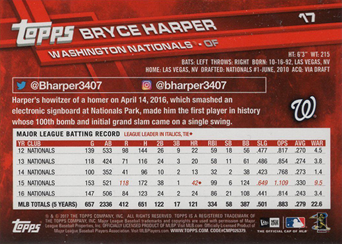 A few components make up the collection. The main 2017 Topps New Era checklist has 32 cards. All 30 teams are represented with the Cubs and Red Sox getting two players each. The design of the set is almost identical to 2017 Topps Baseball, however the images and numbers are different.