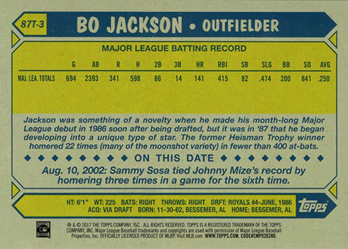 Also included are 1987 Topps Baseball inserts. These highlight 18 retired players. The images and design are the same as the similar inserts found in 2017 Topps Baseball.