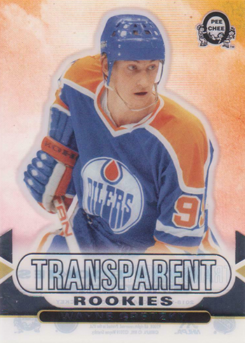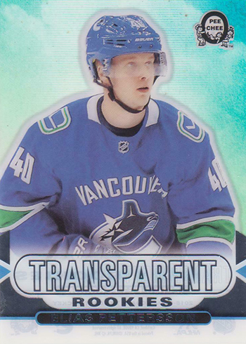 Acetate is showcased on a couple of insert sets in 2018-19 O-Pee-Chee Coast-to-Coast. Transparent All-Stars show 30 players from the mid-season match-up. Similar Transparent Rookies offer see-through cards from ten first-year standouts.
