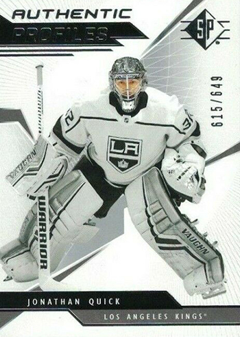 The lone regular insert set in the product is Authentic Profiles. Highlighting star NHL players, there are 20 cards on the checklist, all numbered to 649. Similar to the base set, these have Blue parallels (1:5 packs). All 20 cards also have jersey versions (1:120 packs) and more than half have tough autographs (1:640 packs).