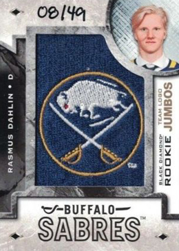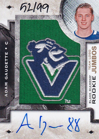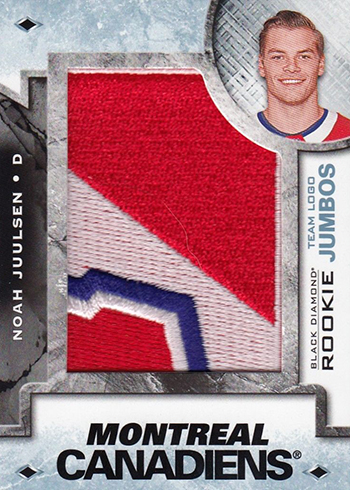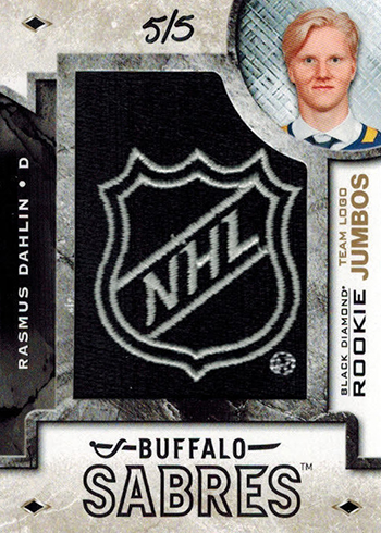 Though the regular versions aren’t signed, Rookie Team Logo Jumbo Patches (1:2 packs) do have a couple of different types of autographed parallels: Alternate Logo (/99 or /49) and NHL Shield Logo (/5).