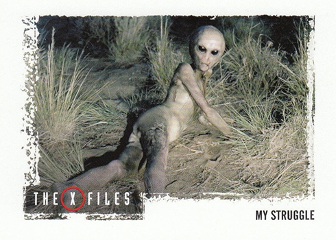 2018 Rittenhouse X-Files Seasons 10 and 11 has a handful of additional inserts. These are available at varying rates with some being relatively easy, while others more challenging to put together. X-Files Quotable has 18 cards with two falling in every box. A regular feature in many of the company’s sets, these highlight some of the most memorable quotes. My Struggle (eight cards, 1:24 packs) looks at the monologues from the tenth season’s first episode.