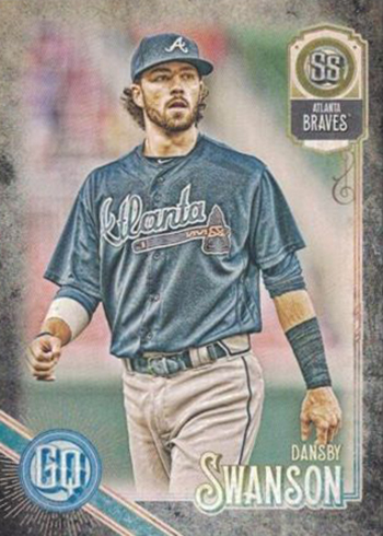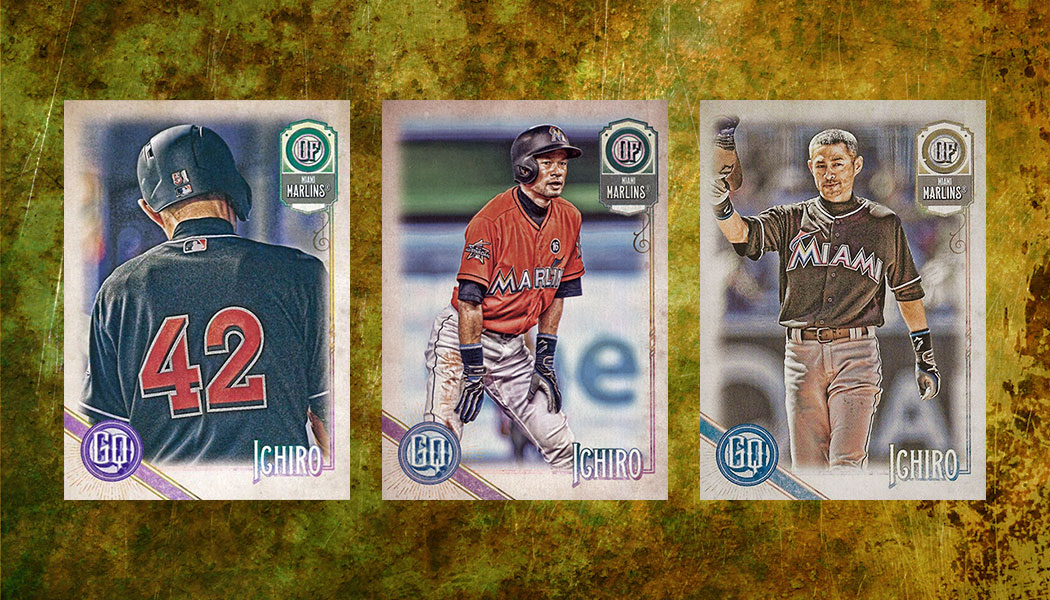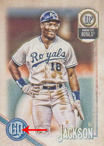 GQ Logo Swap cards are a new addition for 2018 Topps Gypsy Queen. Regular base cards have a text-based logo with the GQ letters. Logo Swap parallels switch it out for a lady’s face.
