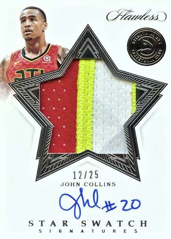 There are no stickers in Flawless. Every autograph in the product is on-card. Signature memorabilia themes include Flawless Patch Autographs, Signature Prime Materials and Star Swatch Signatures.