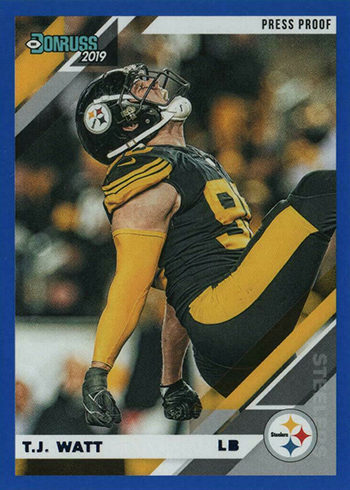The 2019 Donruss Football variations go all-in. The checklist is big and they bring in lots of different photography that’s easily distinguishable from the regular base cards.