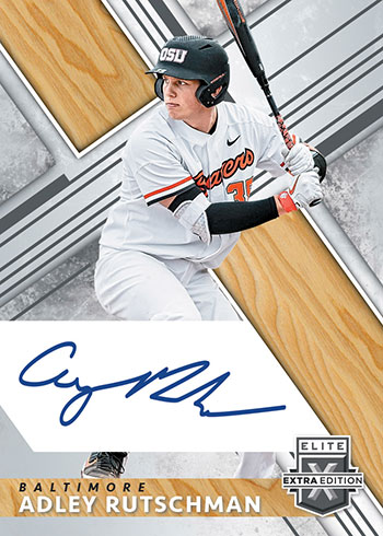 2019 Panini Elite Extra Edition Baseball has USA Baseball autographs as well with Collegiate Tickets, Collegiate Silhouette Autographs and National Team Signatures, which have players from the 15U and 18U squads.