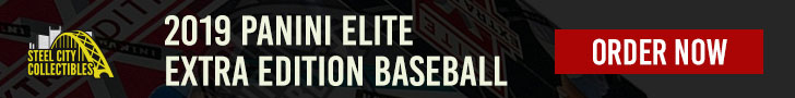 2019 Panini Elite Extra Edition Baseball cards offer another dive into the sport’s prospects. While the latest draft class is front and center, the checklist also goes into the international baseball scene. As usual for the brand, hobby boxes feature lots of autographs — eight total across just five packs. Boxes also have a pair of memorabilia cards.