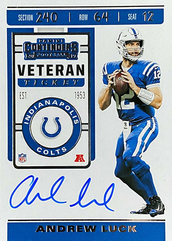 2019 Panini Contenders Football is also available at retail. Blasters, which have five packs, promise either an autograph or memorabilia card.
