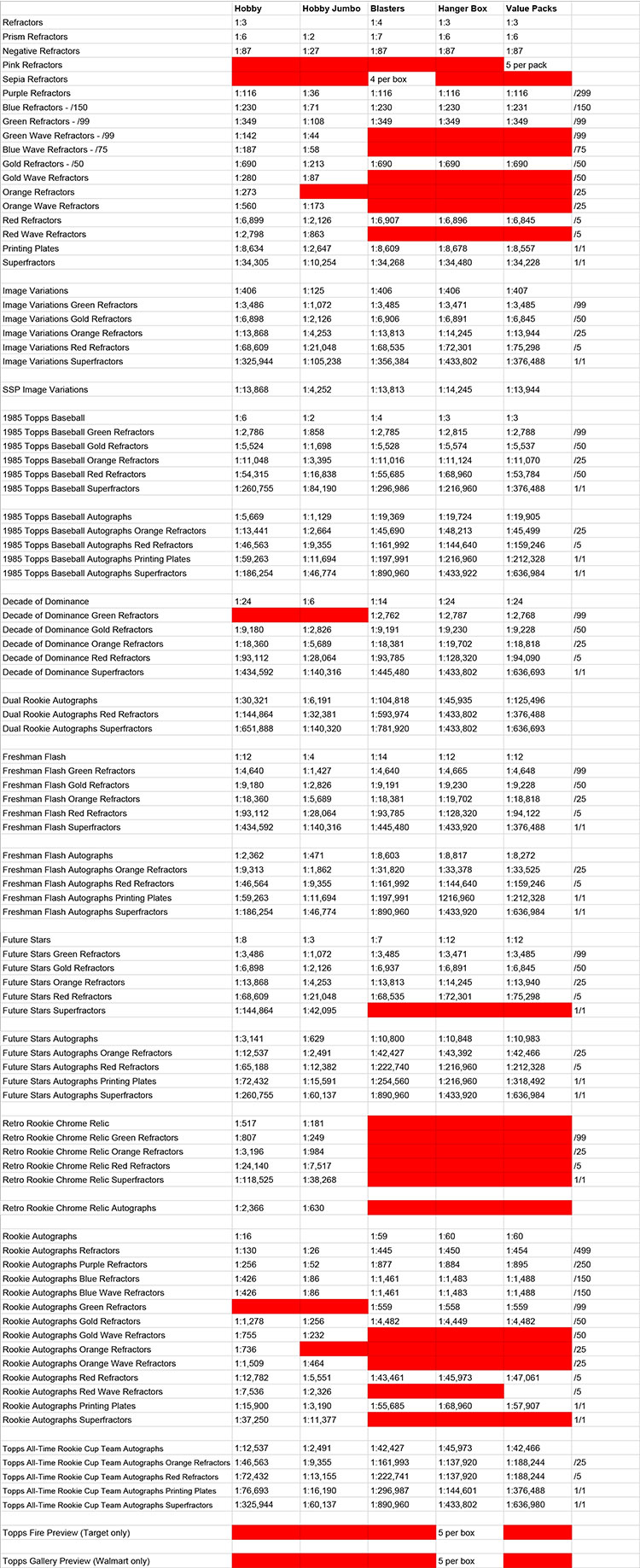 Here’s a look at the 2020 Topps Chrome Baseball pack odds for the various hobby and retail configurations. You can also download a copy: