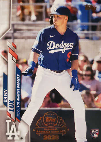 Retail hanger packs have special 2020 Topps Update National Baseball Card Day Preview cards. In addition to five retail packs of Topps Chrome, these have five exclusive inserts with a NBCD stamp on them.