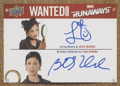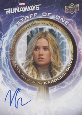 Signatures in 2020 Upper Deck Marvel’s Runaways are on-card.