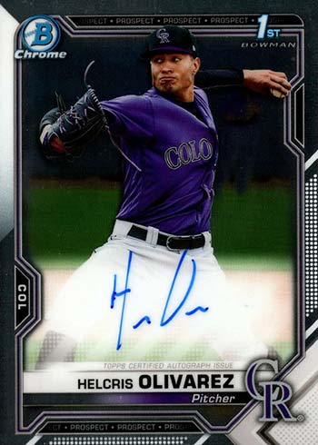 As far as prospects in 2021 Bowman Chrome Baseball packs, Luis Rodriguez is the early standout. Turning 19 a week before the set’s release, the Venezuelan prospect has shown early potential and upside both at the plate and in the field.