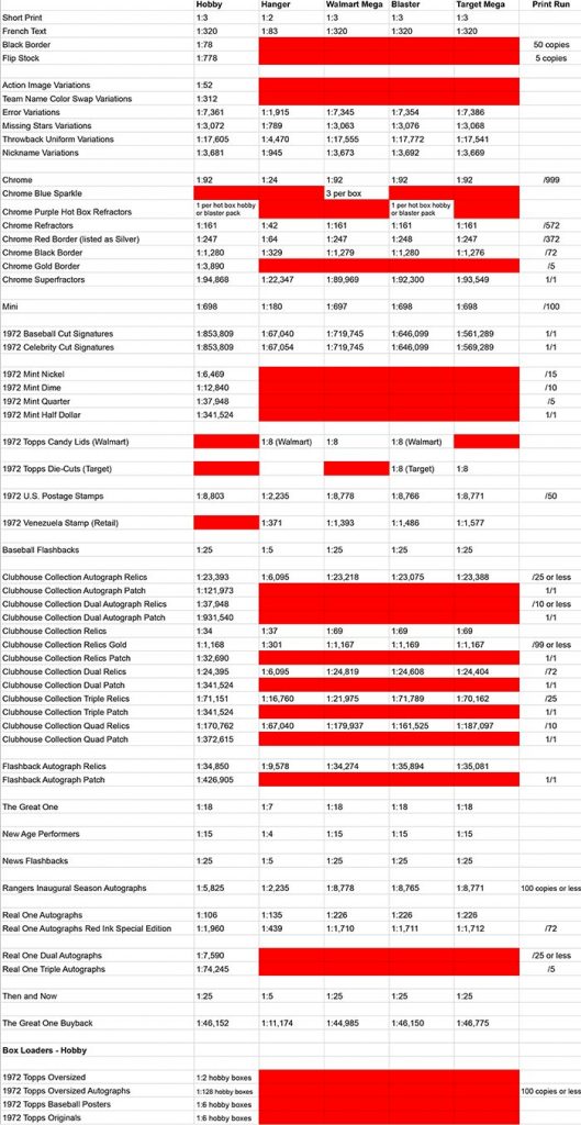 Inspired by the similar 1972 set are 1972 Topps Baseball Posters. According to Topps, these are 1:2 boxes.