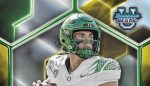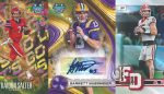 Like 2022-23 Bowman Chrome University, the product is done on chromium stock giving it the familiar metal look and feel. However, Bowman’s Best opts for a busier design with more color integrated into it.