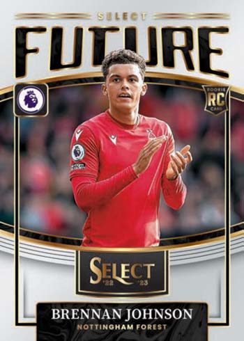 2022-23 Panini Select Premier League Soccer joins Prizm as offering a shine-driven look at top players and rookies. While there are some similarities to Prizm, particularly in the chrome stock and color-driven parallels, Select has several aspects that give it its own identity.