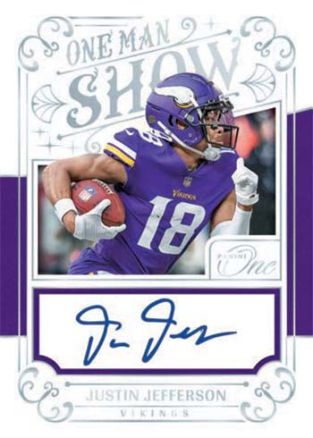 One on-card autograph — that’s the promise of every 2022 Panini One Football hobby box. Nothing less, nothing more (unless there’s a bonus card). Like past years, these autographs take on several different themes and design, mixing current stars, rookies and some greats from the past.