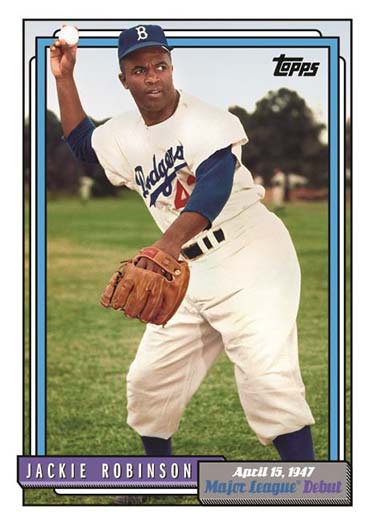 1992 Topps Major League Debuts draws from the ’90s design to highlight a mix of greats and young players from their earliest days in MLB. Some players get the autograph treatment as well, which also have Purple (/150), Silver (/99), Blue (/25) and Gold (1/1) versions.