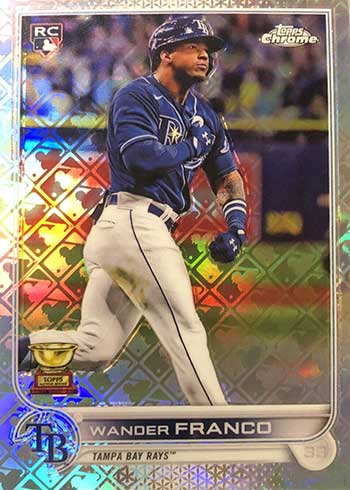 A total of 110 base cards from the 2022 Topps Chrome base set get the Logofractor treatment.