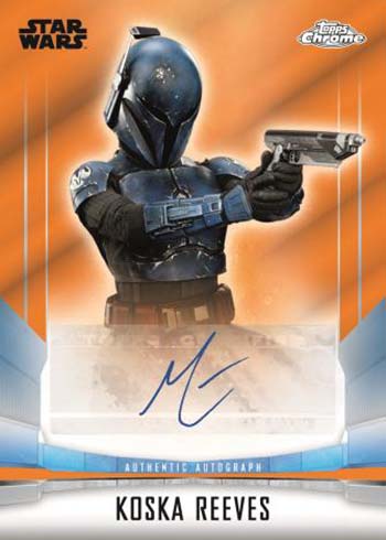 Like the rest of the set, autograph signers cover both seasons of The Mandalorian. Parallels for these include Blue Refractors (/150), Green Refractors (/99), Purple Refractors (/50), Orange Refractors (/25), Red Refractors (/5) and Superfractors (1/1).