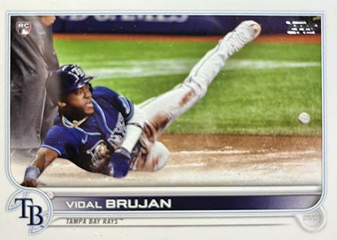Advanced Stats cards are also back in 2022 Topps Series 1 Baseball. Fronts are the same, but the stats on the back are different. They’re also serial numbered to 300. It’s likely that all regular player cards have Advanced Stats cards. Because they’re similar to parallels, they’re not listed in the guide below.