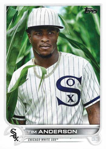 Warm-ups and pre-game activities are definitely in the 2021 Topps Series 1 Baseball variations mix. These often picture players in different uniforms or casual attire. Others are from special games like the Field of Dreams, making cornstalks a photo focal point.