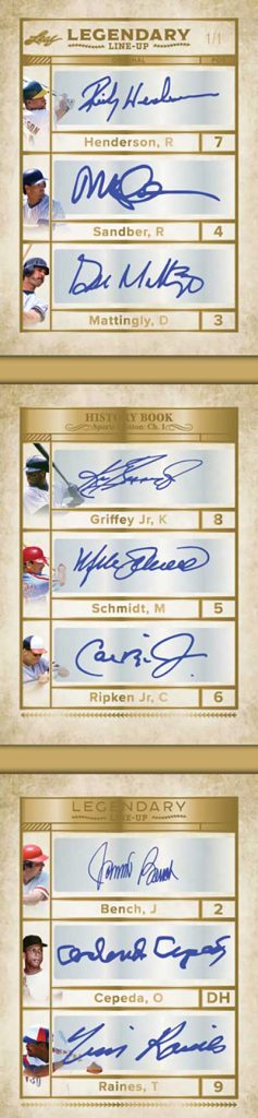 2023 Leaf History Book Sports Edition Chapter 1 takes the book card theme and runs with it. Every card in the product takes on the multi-panel build, offering lots of unique combinations of autographs and memorabilia cards along the way.