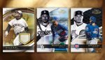 Memorabilia cards aren’t guaranteed to land in every box but they do average out to every other hobby box or six per case. AU Athlete Relics all come with pieces from game-used uniforms. Rainbow Foil Board (/99), Gold Foil Board (/50) and Foilfractor (1/1) versions are available here as well.
