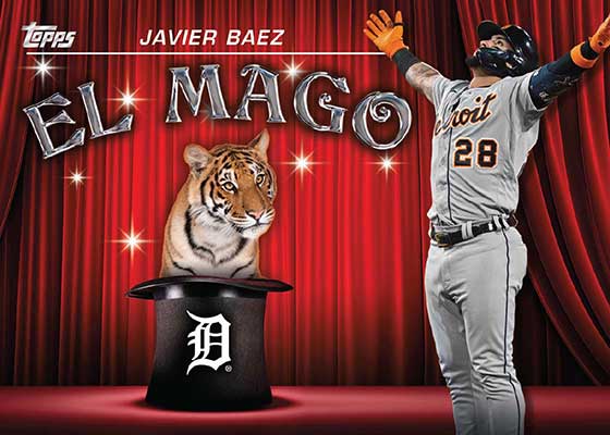 The concept is pretty simple. It starts with the nickname, which are splashed across the front like a billboard (or theatre marquee in the case of Ohtani). Images are added to give the monicker a literal interpretation. Paul “Goldy” Goldschmidt is standing next to a pile of Fort Knox. Javier “El Mago” Baez is a magician pulling a tiger out of a hat. And in case you’re looking for a baseball card to impress your dentist, Francisco “Smile” Lindor celebrates toothbrushes and toothpaste.