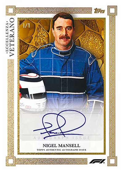 Alain Prost, David Coulthard and Nigel Mansell are the only autographs in Eccellenza. These are tough and randomly inserted in boxes.