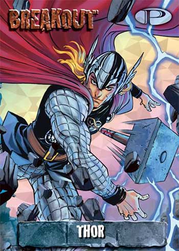 Breakout has characters breaking through walls. Adding to the challenge on these are short print and SSP cards that are in smaller supply.