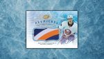More common inserts are Front Row Talent (1:3 packs), Jumping on the Ice (1:4 packs), Cheered to the Rafters (1:5 packs), That’s a Hatty (1:5 packs), Frozen Fight (1:7 packs), and Milestone Pucks (1:7 packs), which use photos showing players with the pucks from important moments like their first goals or hat tricks. All of these come with additional Red (/149) and Green (/49) parallels. Tough autographs are also available for some cards.
