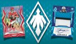 Rare Backscatter Gold sticker cards, which fall only twice per case, give collectors plenty of shine with a textured rainbow foil design. Base Backscatter cards fall once per hobby box.