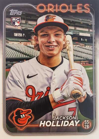 Early rips uncovered that Jackson Holliday had a card paying homage to one of the most famous cards of the ’80s — the 1989 Fleer Bill Ripken. Only, instead of an obscenity on his bat knob, Holliday’s says, “Fun Face.”