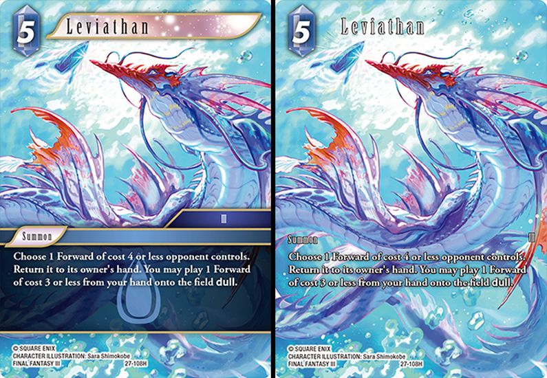 Ripping packs, collectors will quickly notice the difference between Standard artwork and Premium cards. Standard cards box the Summon, obscuring the “full art,” while Premium cards allow players to see the full artwork.