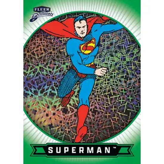 Superman came to our planet in 1938 thanks to the imagination of writer Jerry Siegel and artist Joe Shuster in issue #1 of Action Comics. Upper Deck was founded in 1988, releasing their first card set in 1989. The Fleer Brilliants line first hit shelves in 1998 for sports card collectors. In an exciting first of its kind release, all three iconic lines are brought together in a 90-card base set.