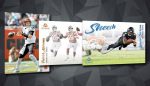 The base set goes full-bleed, leaving out borders so that the action images can be the star. Both vertical and horizontal designs are integrated into the main set, which features both established stars and rookies.